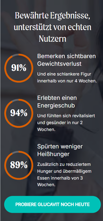 Glucavit nutzt die Kraft der Natur mit Inhaltsstoffen wie Apfelessig und Vitamin B12, die sorgfältig ausgewählt wurden, um deinen Stoffwechsel zu unterstützen, Heißhunger zu zügeln und deine Energie zu steigern. Keine künstlichen Zusatzstoffe – nur reine, bewährte Inhaltsstoffe, die mit deinem Körper im Einklang wirken.